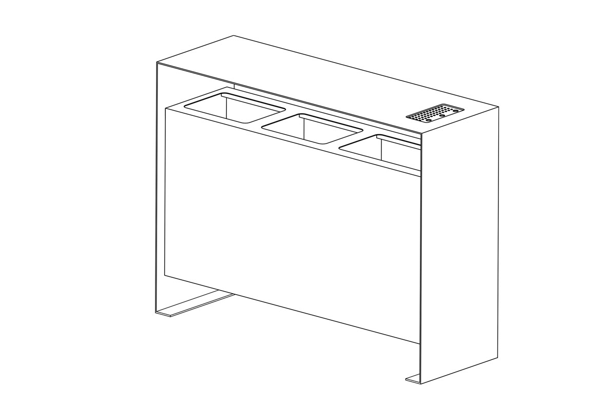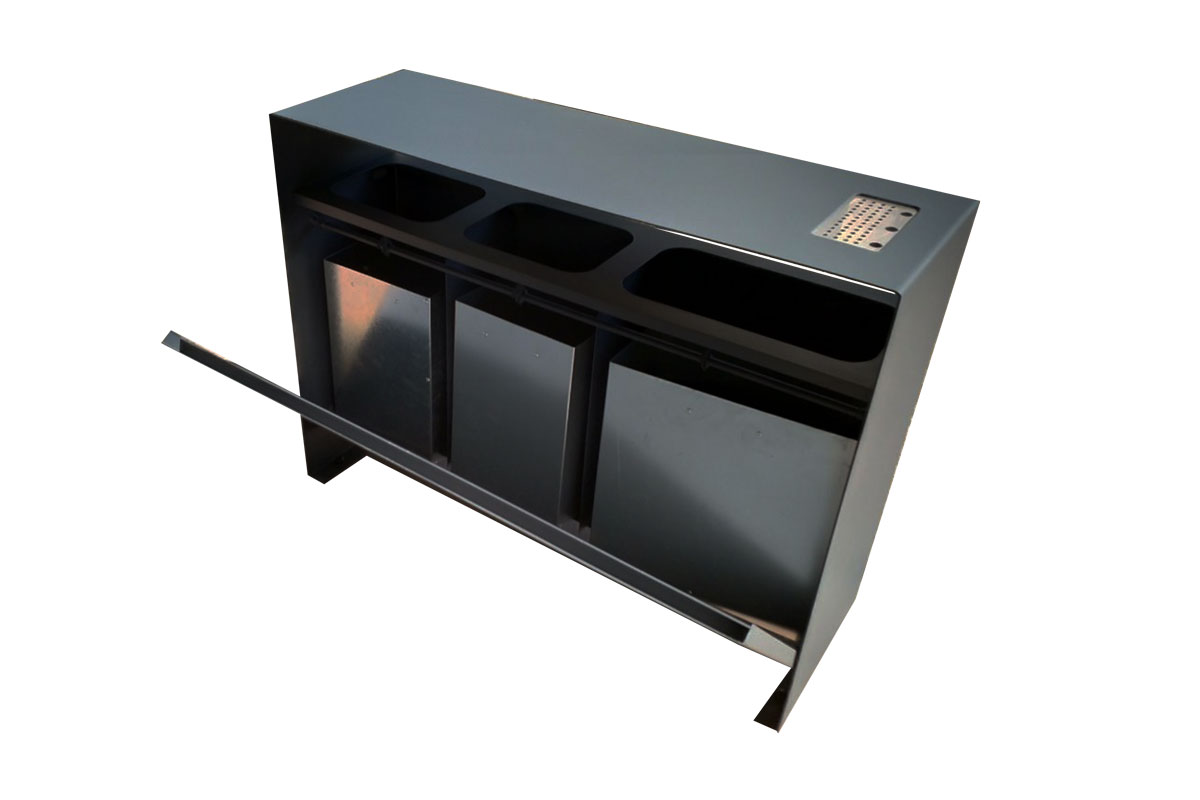 This product is designed for three different types of waste – PET/MET, Paper, and mixed waste. Every section has its own inner bin. Urban waste set is made completely out of non-corrosive material for safe outside use (Stainless steel - AISI 304). Ashtray is located on top part of the set.