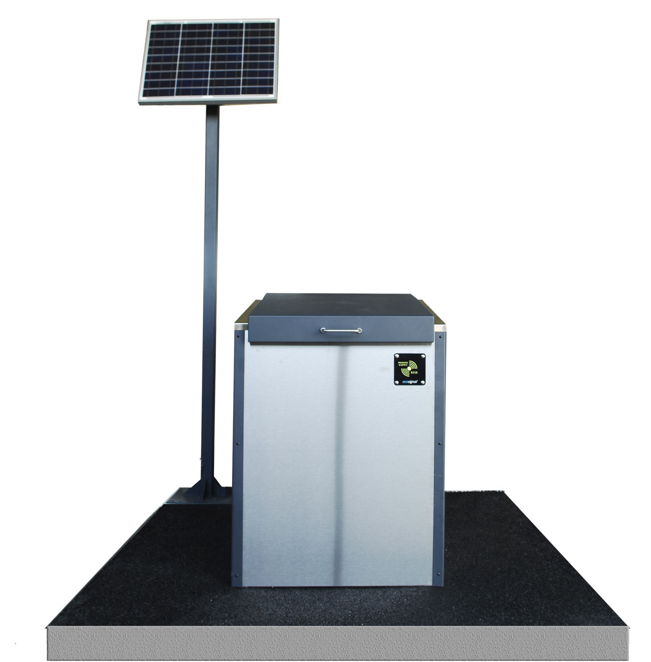 This product is power independent thanks to its solar recharging system. Access control is given to users through RFID card/tag depending on buyer request.